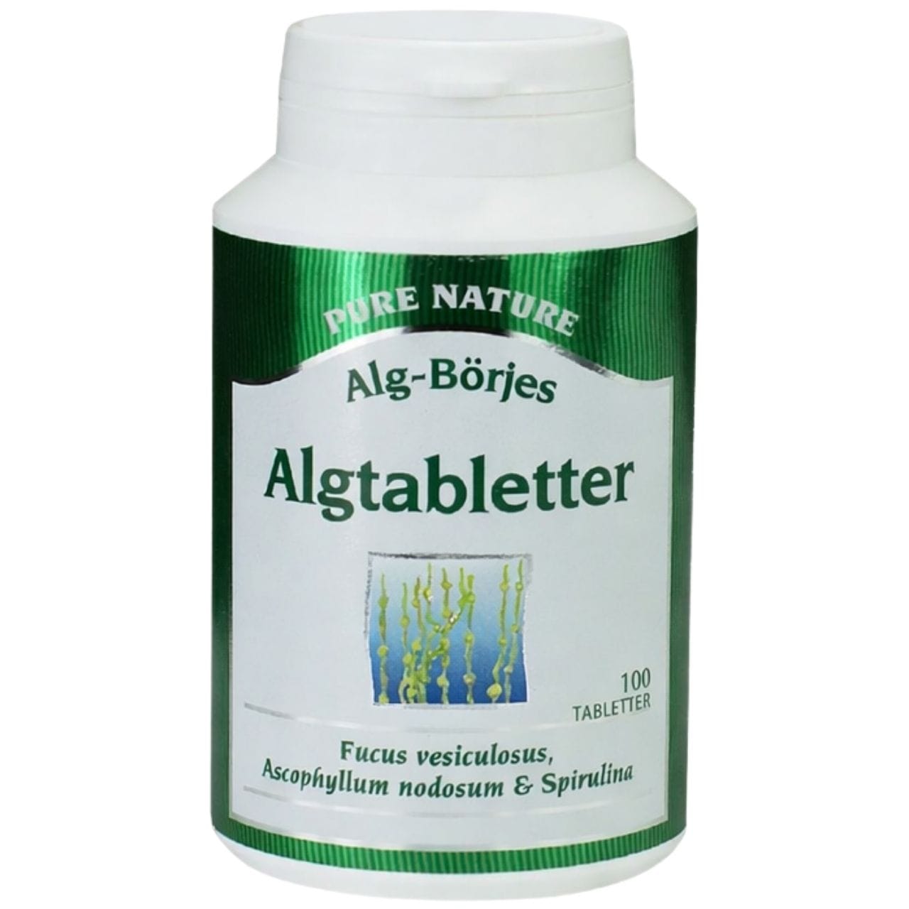 Alg-Borje Algtabletter is a dietary supplement in tablet form. The product is made from sea algae harvested on the north-western coast of Iceland.