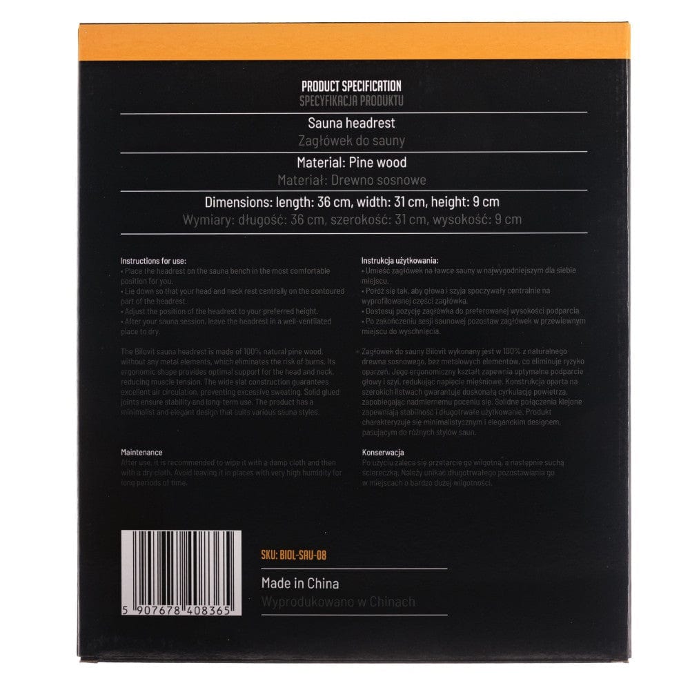 Bilovit Sauna Headrest, Pine - 1 piece