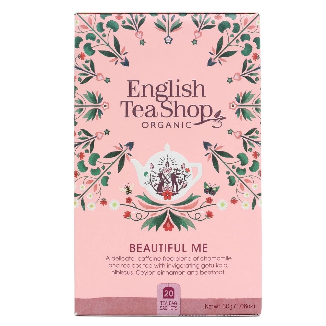 Feel beautiful from the inside out! English Tea Shop Beautiful Me is a caffeine-free, organic blend combining mild chamomile with cleansing gotu kola.