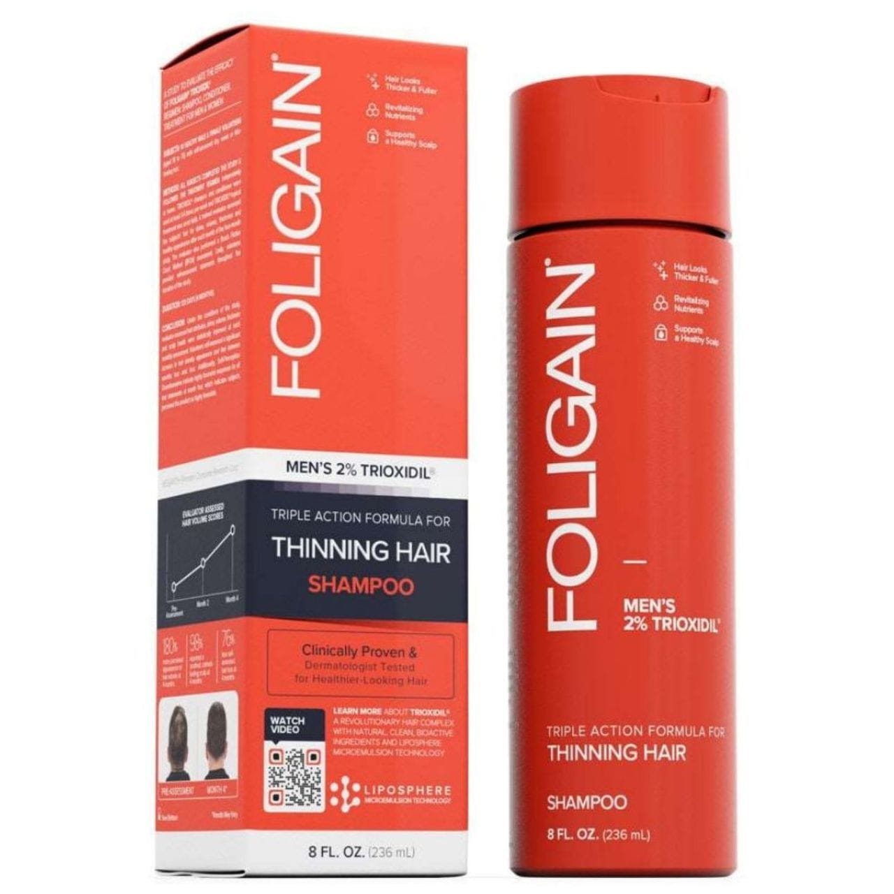 FOLIGAIN Shampoo with 2% Trioxidil is a clinically tested formula for men with thinning hair. It contains the patented Trioxidil complex, which has been shown in studies to increase hair volume by 180% in 4 months and reduce hair loss by 76%. It blocks DHT, cleanses the scalp and strengthens hair follicles. Free from parabens, sulphates and phthalates!