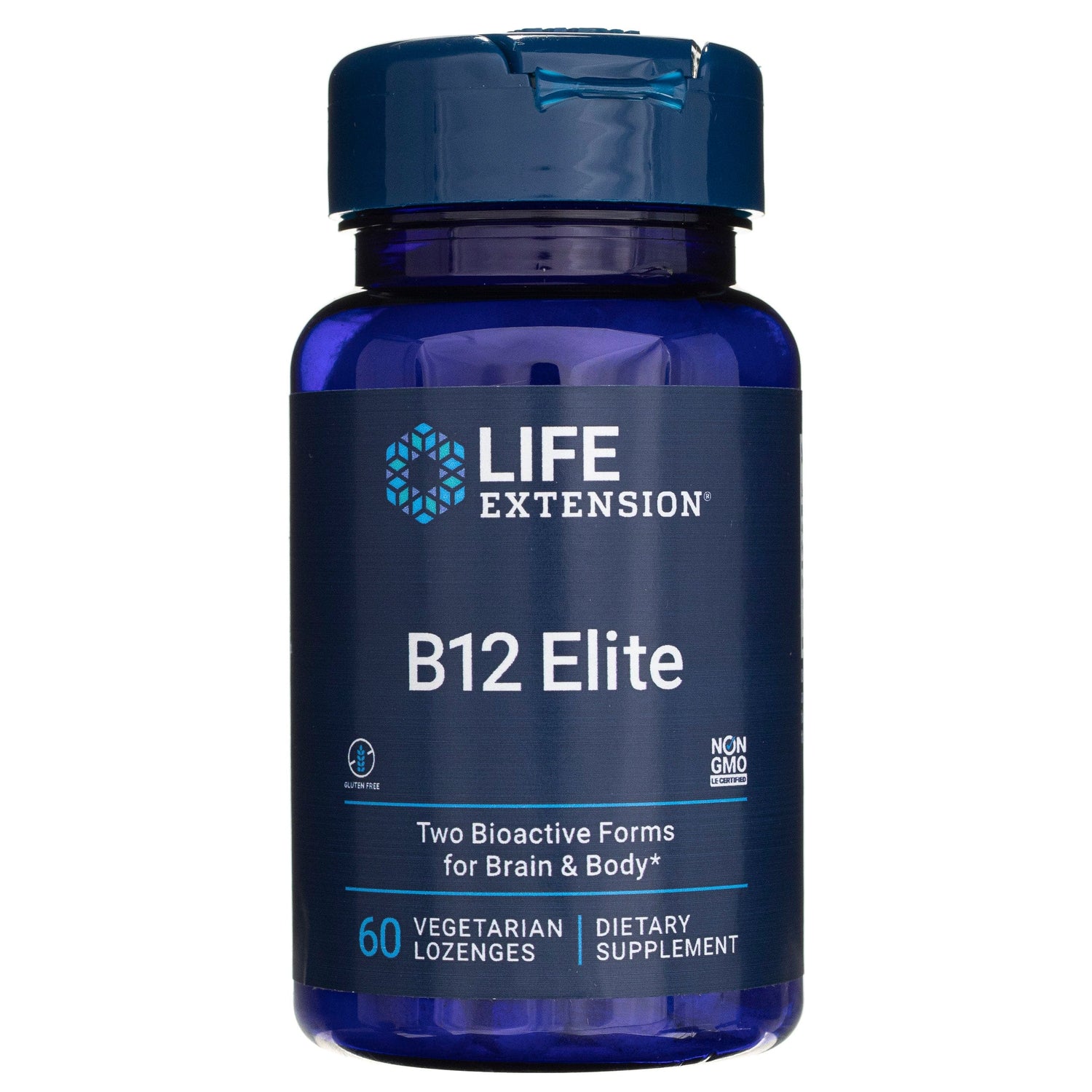 Life Extension B12 Elite - Vitamin B12 is essential for brain health and function, energy metabolism and the production of red blood cells. B12 Elite combines two active forms of this crucial vitamin in a single vegetarian lozenge. Vitamin B12 is essential for proper biological processes. Serum levels of vitamin B12 can decline over time, and because it’s found primarily in animal products, vegetarian diets may not provide sufficient B12. Our B12 Elite gives you 500 mcg each of adenosylcobalamin and methylcobalamin: two neurologically active forms of B12.