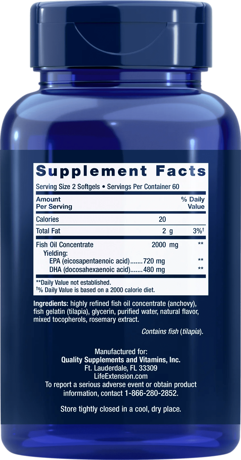 Highly refined fish oil concentrate (anchovy), fish gelatin (tilapia), glycerin, purified water, natural flavor, mixed tocopherols, rosemary extract.
