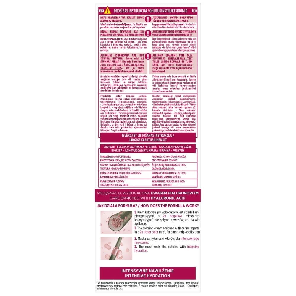Protective colouring cream: Enriched with conditioning ingredients, provides long-lasting colour. The 2x richer colouring mix* does not run off the hair, making application easier.