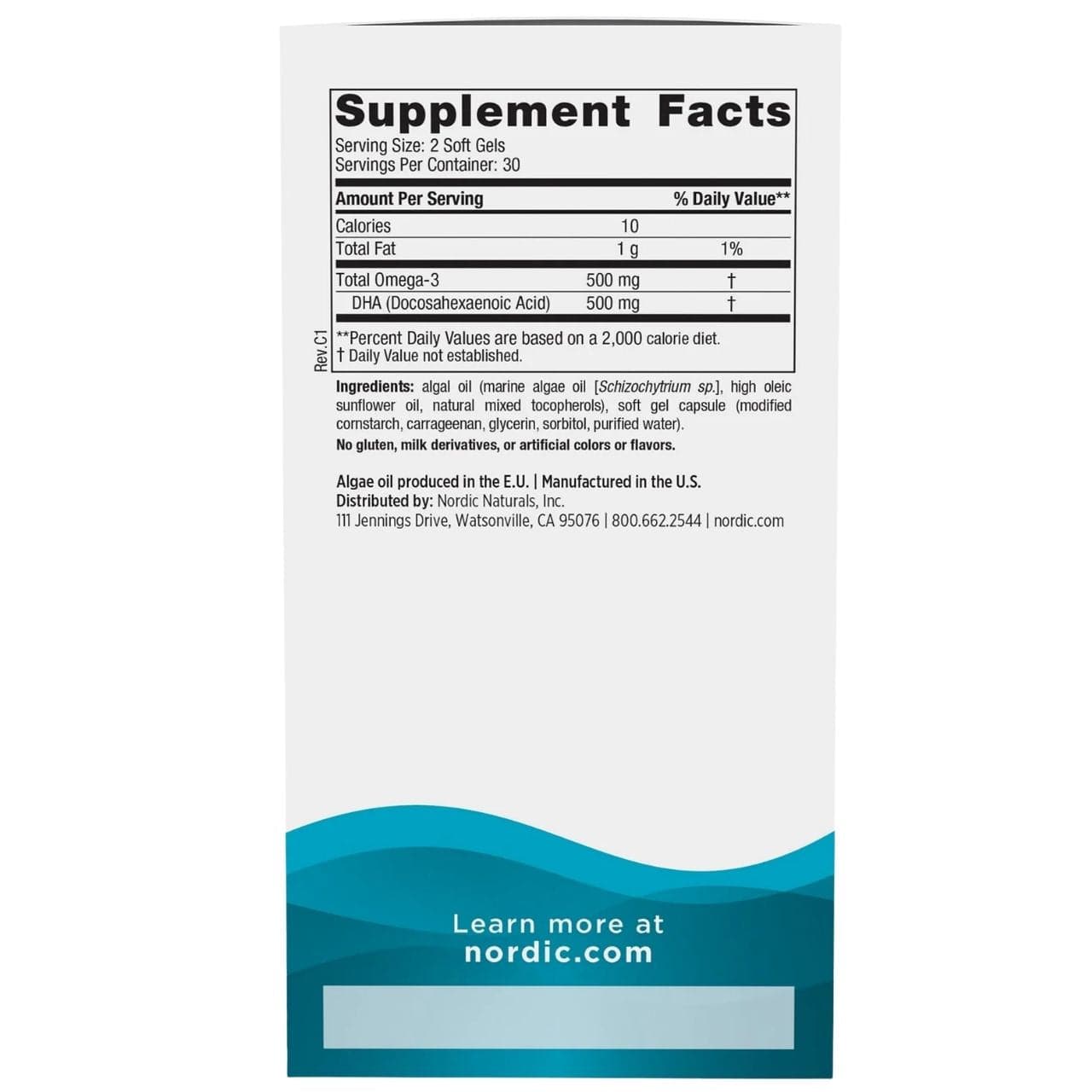 Nordic Naturals Algae DHA (Omega-3 from Algae) 500 mg - 60 Capsules