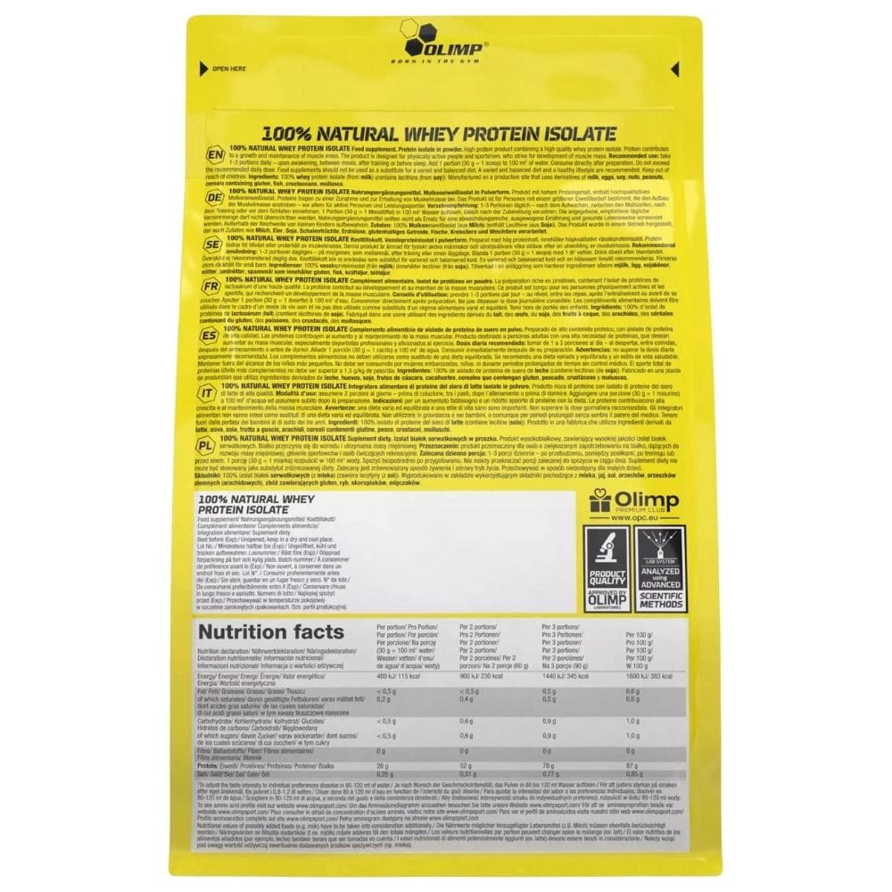 100% whey protein isolate (from milk) (contains lecithins (from soya)).