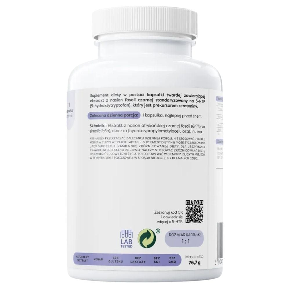 Osavi 5-HTP is a dietary supplement in capsule form. It contains black bean seed extract standardized to 5-HTP (5-hydroxytryptophan), which is a precursor to serotonin.