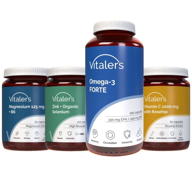 Omega-3 FORTE by Vitaler's is a dietary supplement characterised by a high content of omega-3 fatty acids, including eicosapentaenoic acid (EPA) and docosahexaenoic acid (DHA) – these unsaturated fatty acids are essential for the proper functioning of the body.