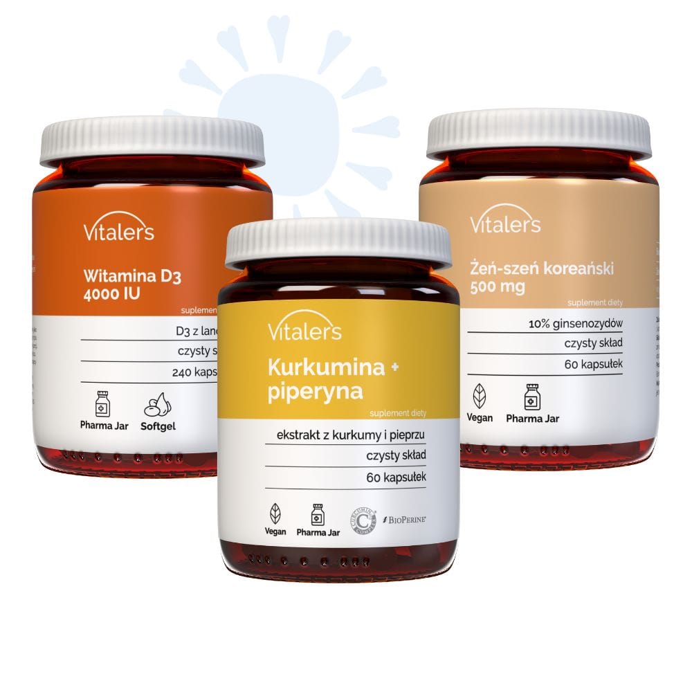 • Vitaler's Curcumin + Piperine – a combination of curcumin and piperine, which significantly increases its absorption. Curcumin has strong anti-inflammatory properties, supports the joints and digestive system, helping to maintain health and well-being on a daily basis.