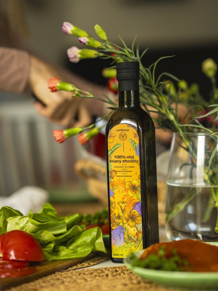 Golden flaxseed oil should be stored in the original dark bottle at 4 to 20 degrees Celsius. Once opened, the product should be kept in the fridge, without access to oxygen, and consumed within a maximum of six weeks. Closed flaxseed oil usually has a shelf life of three months (from the date of pressing), due to the nature of the cold-pressing process and the omission of the purification step. Natural linseed oil also does not contain any preservatives, so it is produced in small quantities that guarantee its freshness and excellent taste.
