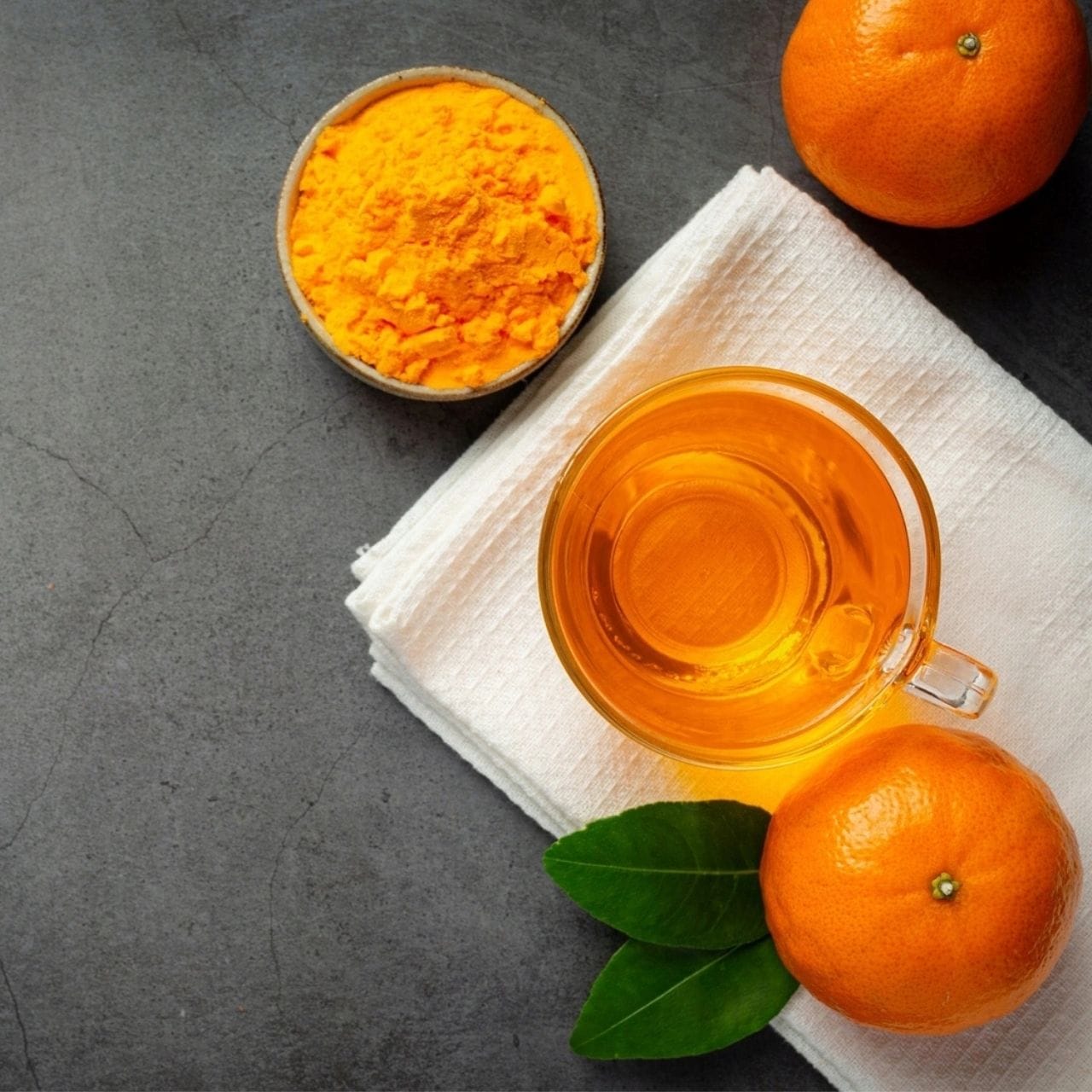 Hibiscus* (24%), lemongrass*, liquorice*, coriander*, roasted chicory*, orange* (7%), orange peel* (6%), beetroot*, red orange oil* (2%), orange oil* (2%). *certified organic ingredient.